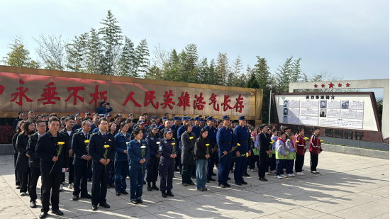 清晨的烈士陵园,松柏挺拔、翠色凝思,革命烈士纪念碑高耸矗立、庄严肃穆。活动现场,全体人员整齐列队,怀着无比崇敬的心情,依次开展奏唱《中华人民共和国国歌》、少先队员献唱《我们是共产主义接班人》、肃立默哀、向烈士行三鞠躬礼、敬献鲜花等庄重仪式,深切缅怀为民族独立、人民解放和国家富强、人民幸福英勇献身的革命先烈。朵朵菊花承载着对英烈的无限追思,铮铮誓言彰显着新时代儿女奋进昂扬的坚定决心。
